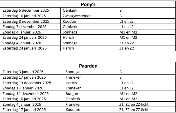 Net als outdoor 2025 zal er op de selectiewedstrijden dezelfde proef gereden worden als tijdens de Friese Indoorkampioenschappen en KNHS Indoorkampioenschappen.