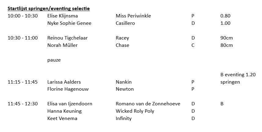 Naast de lessen zijn in het jeugdplan inbegrepen, een mentale coaching avond voor ouders, een stalbezoek bij bekende ruiter/stal, een dressuur/ springclinic en een JSP